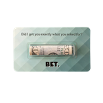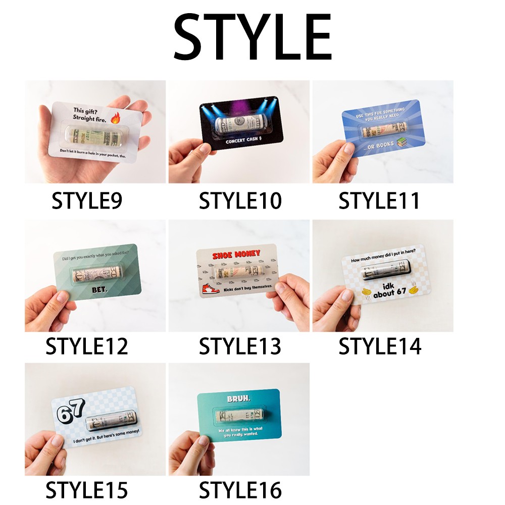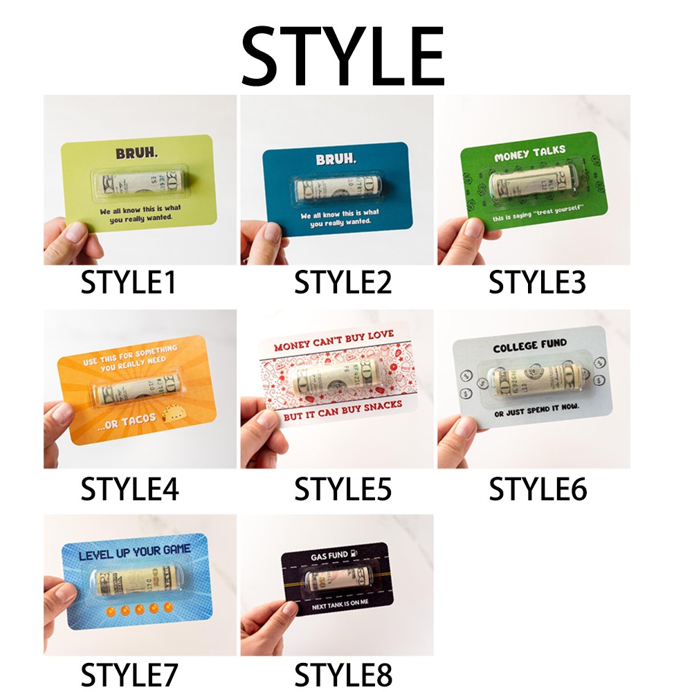 We ship the money gift cards to you, including the clear dome for bills and sticker adhesive. Just put your cash gift inside the money holder, remove the adhesive strips, and stick the clear dome on the money holder. They are quick, easy, and funny stocking stuffers!