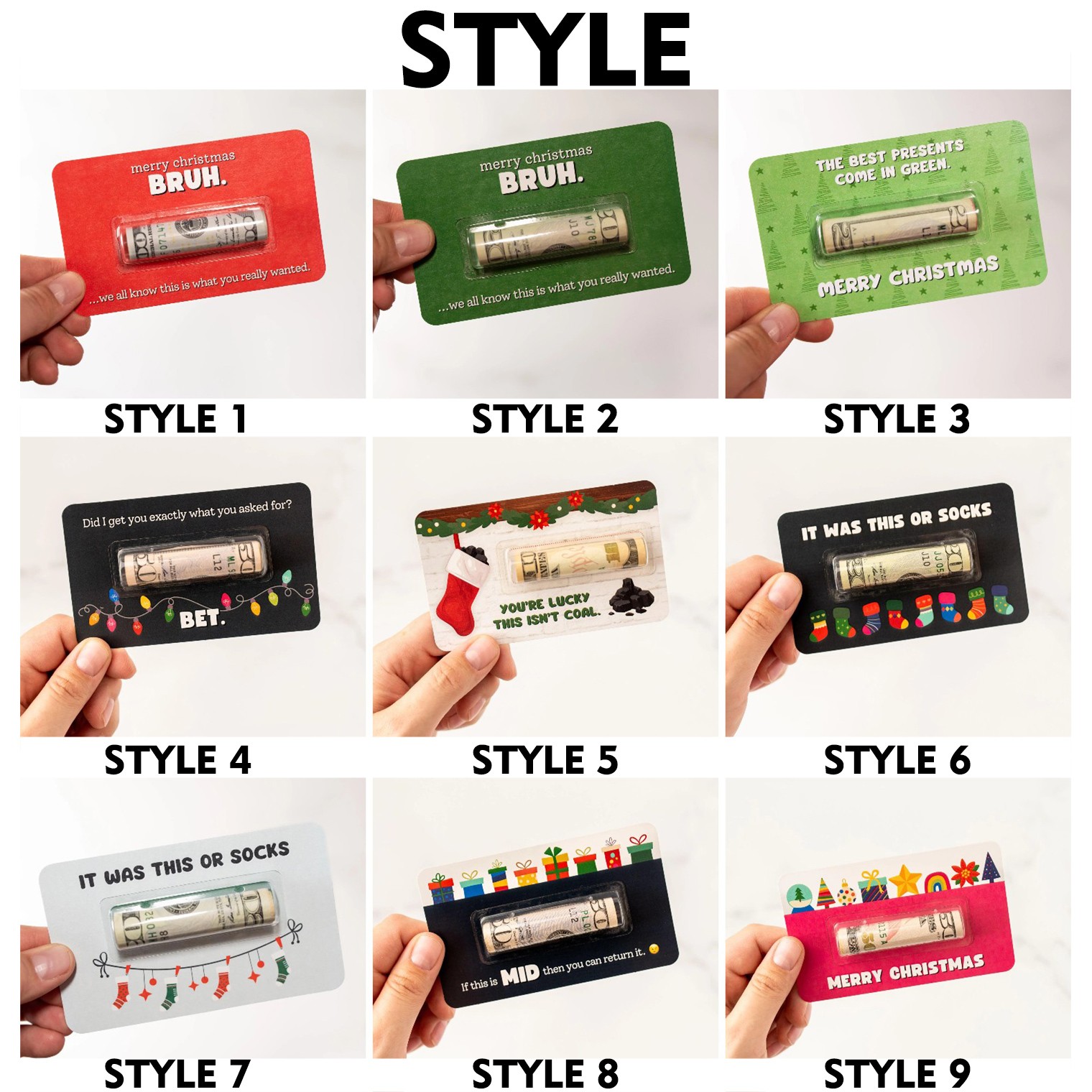 The card is easy to put in a stocking, add to a gift bag, punch a hole in to hang on the tree, or gift just by itself. This listing includes our holiday sayings, making them fun Christmas money holders, especially for a teen boy or teen girl!