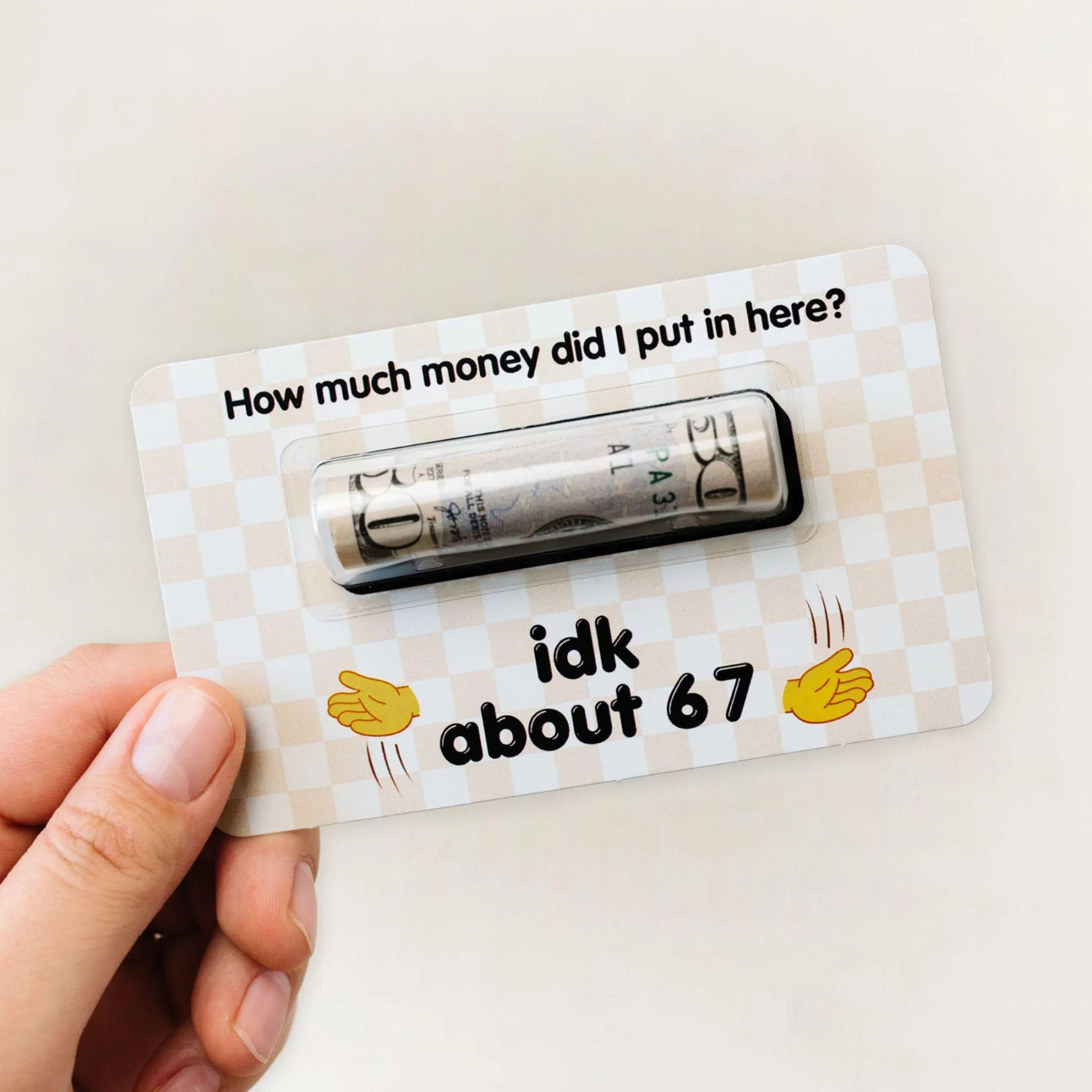 We ship the money gift cards to you, including the clear dome for bills and sticker adhesive. Just put your cash gift inside the money holder, remove the adhesive strips, and stick the clear dome on the money holder. They are quick, easy, and funny stocking stuffers!