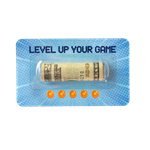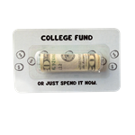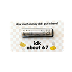 Your purchase includes a clear plastic dome for rolled bills, and an adhesive sticker perfectly sized to the dome. Pictures show the intended use but NO MONEY IS INCLUDED.