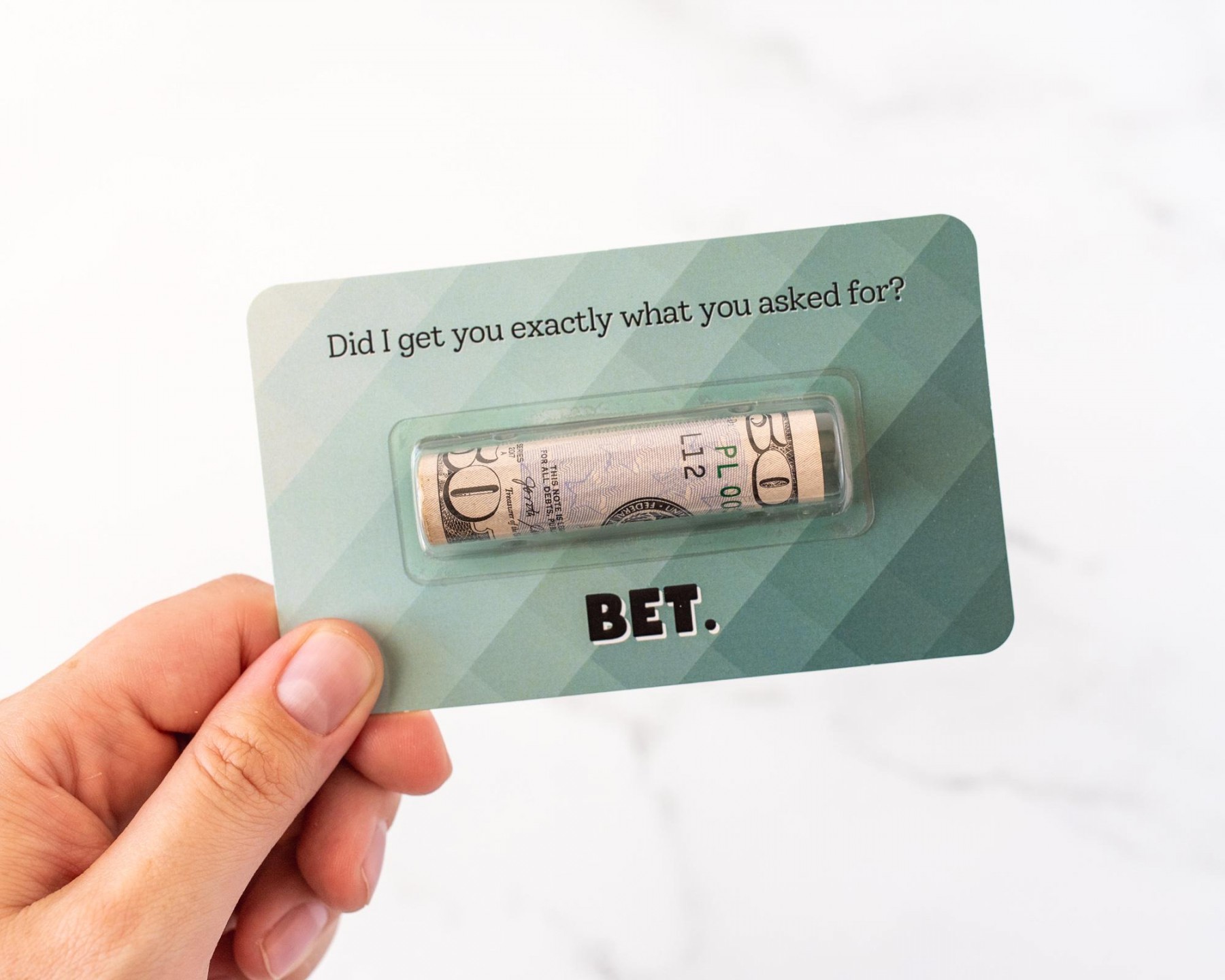 We ship the money gift cards to you, including the clear dome for bills and sticker adhesive. Just put your cash gift inside the money holder, remove the adhesive strips, and stick the clear dome on the money holder. They are quick, easy, and funny stocking stuffers!