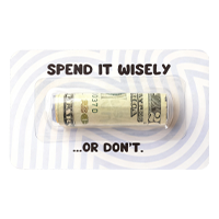 Your purchase includes a clear plastic dome for rolled bills, and an adhesive sticker perfectly sized to the dome. Pictures show the intended use but NO MONEY IS INCLUDED.