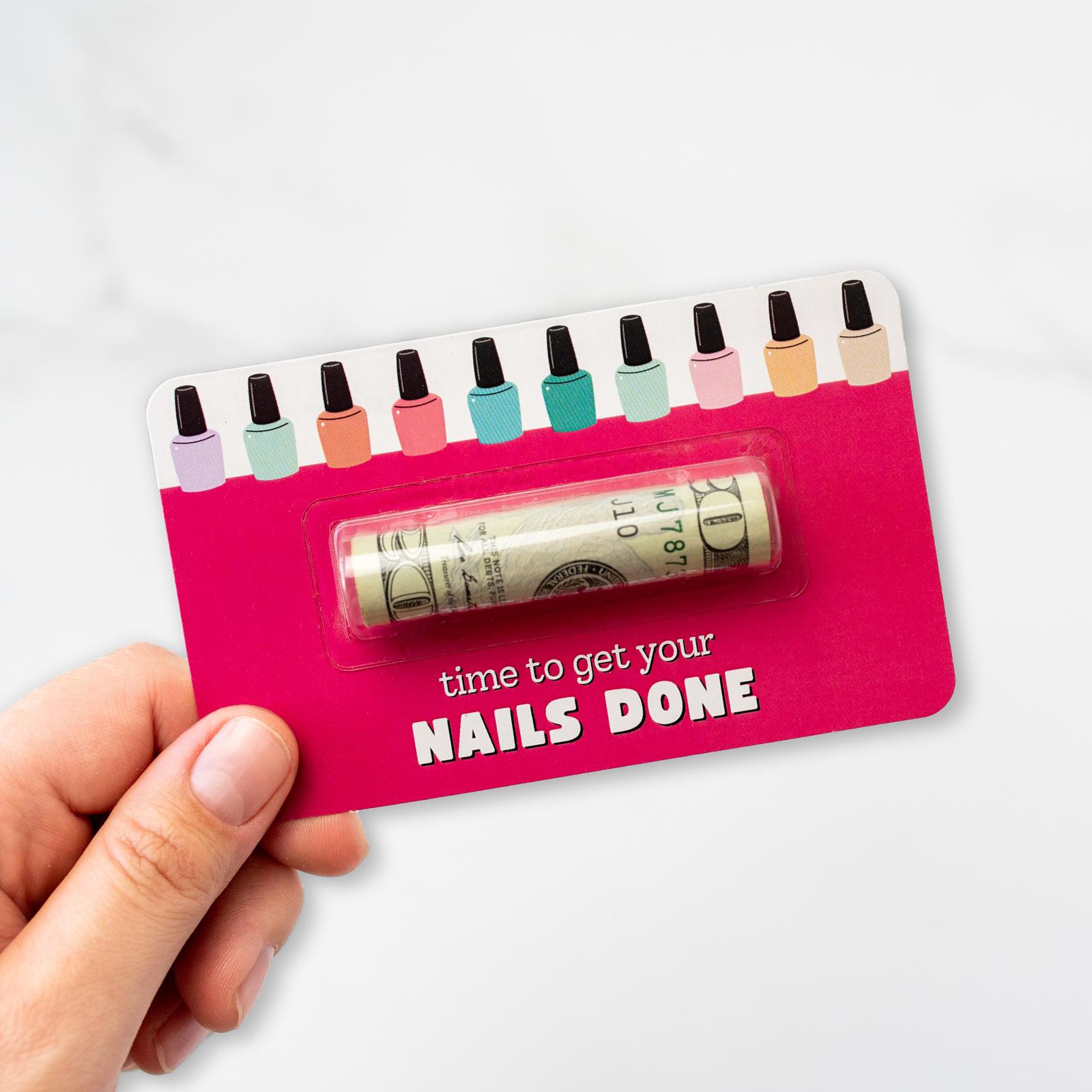 We ship the money gift cards to you, including the clear dome for bills and sticker adhesive. Just put your cash gift inside the money holder, remove the adhesive strips, and stick the clear dome on the money holder. They are quick, easy, and funny stocking stuffers!