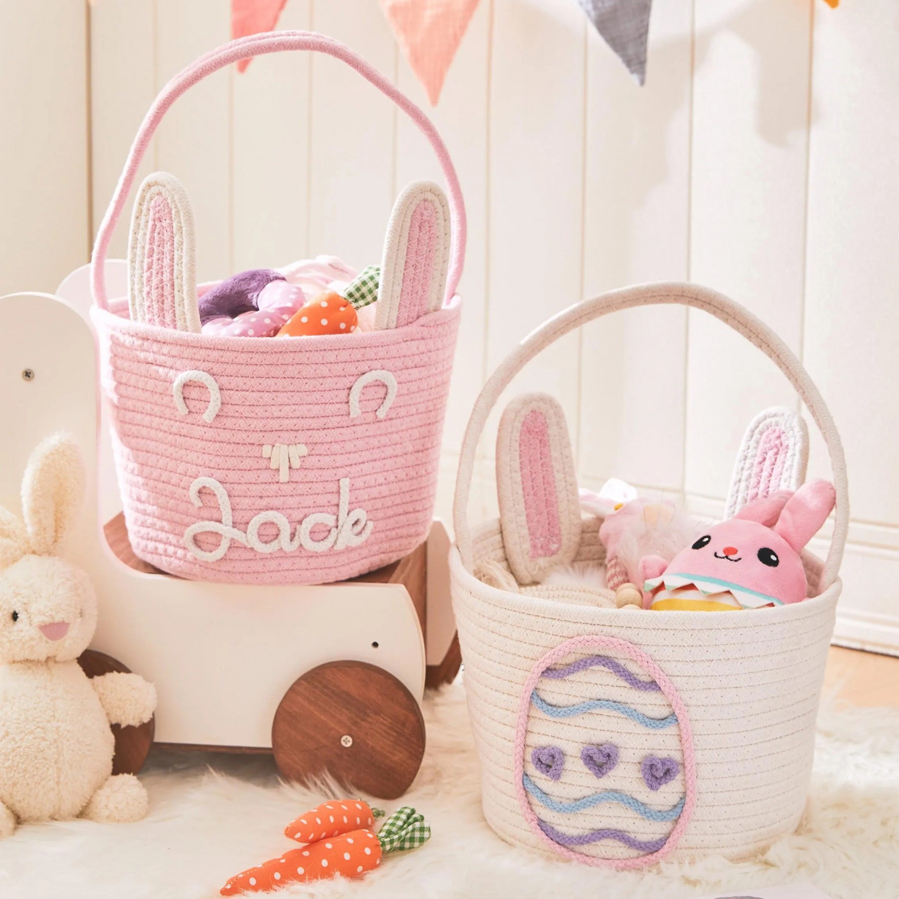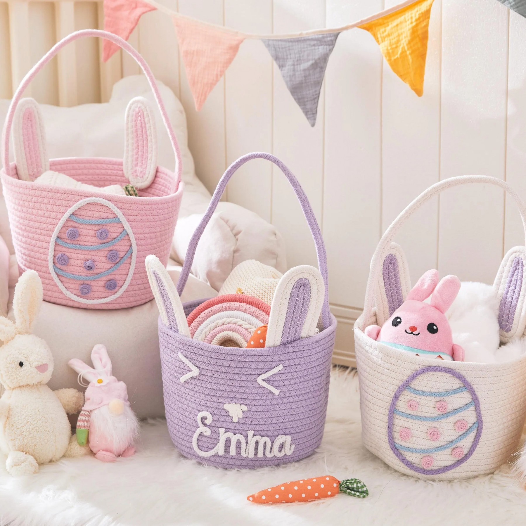 Celebrate Your Little One’s First Easter with our adorable, handcrafted Easter baskets! Each basket is made with love and features special touches like festive holiday bows, charming flowers, and your child’s name, all beautifully embroidered by hand. You can choose from sweet bunny or colorful egg embellishments to make it even more special!