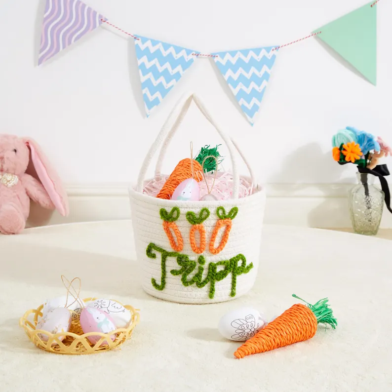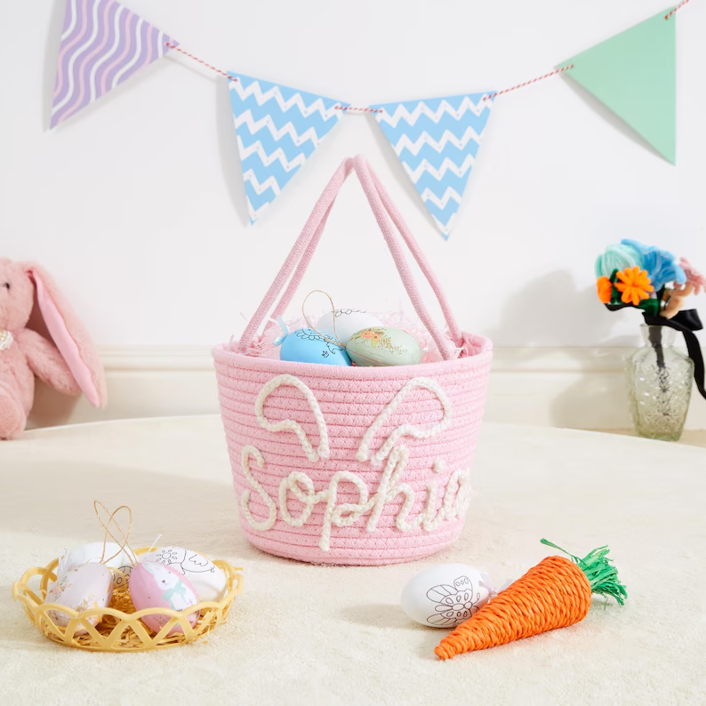 Celebrate Your Little One’s First Easter with our adorable, handcrafted Easter baskets! Each basket is made with love and features special touches like festive holiday bows, charming flowers, and your child’s name, all beautifully embroidered by hand. You can choose from sweet bunny or colorful egg embellishments to make it even more special!