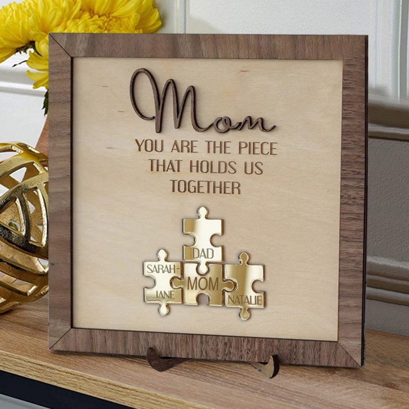 Personalized Mom Puzzle Sign With Kids Name You Are The Piece That Holds Us Together For Mother's Day Gift