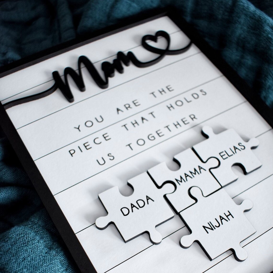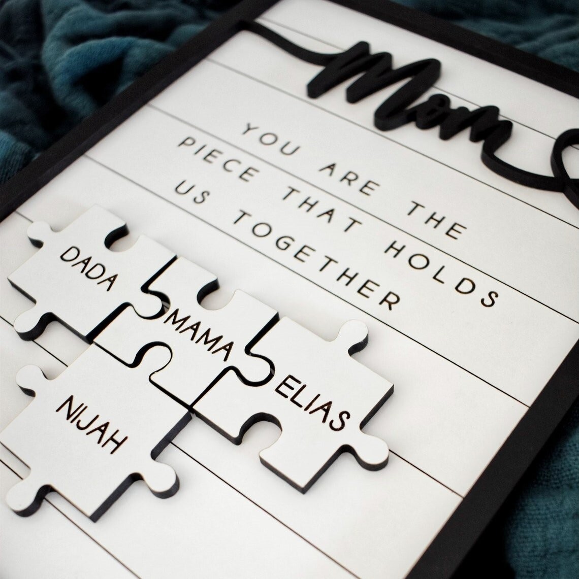 Personalized Mom Puzzle Sign With Kids Name You Are The Piece That Holds Us Together For Mother's Day Gift