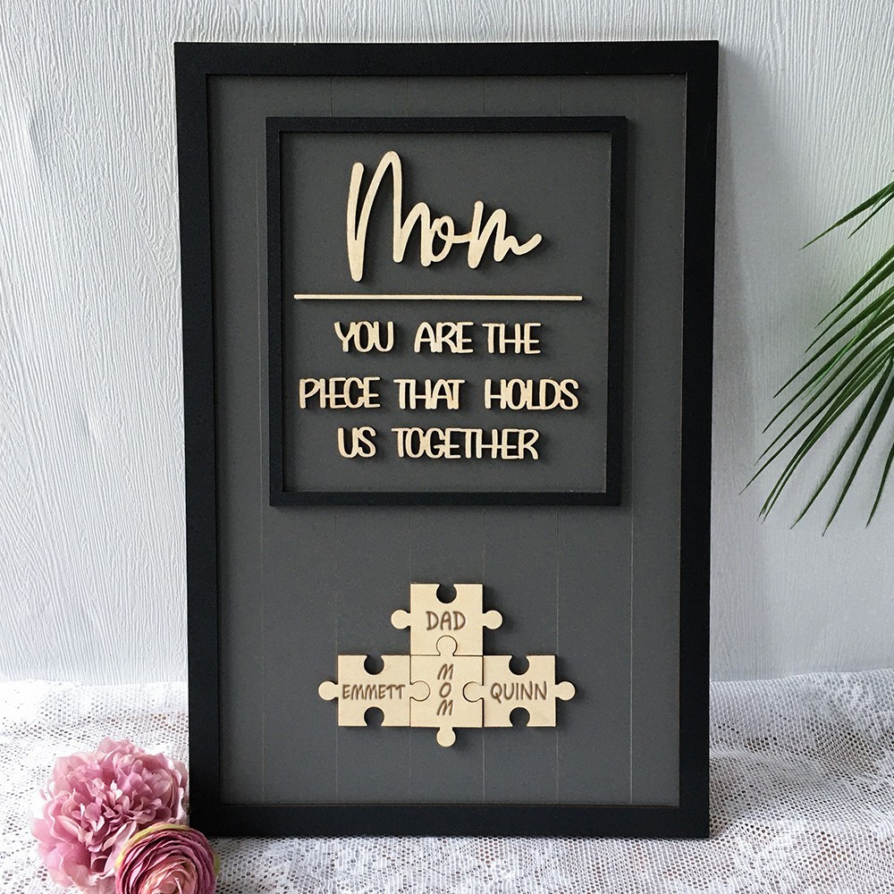 Personalized Mom Puzzle Sign With Kids Name You Are The Piece That Holds Us Together For Mother's Day Gift