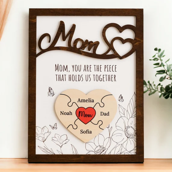 Personalized Mom Puzzle Sign With Kids Name You Are The Piece That Holds Us Together For Mother's Day Gift
