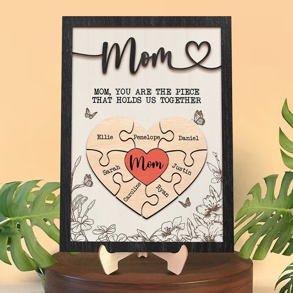 Personalized Mom Puzzle Sign With Kids Name You Are The Piece That Holds Us Together For Mother's Day Gift