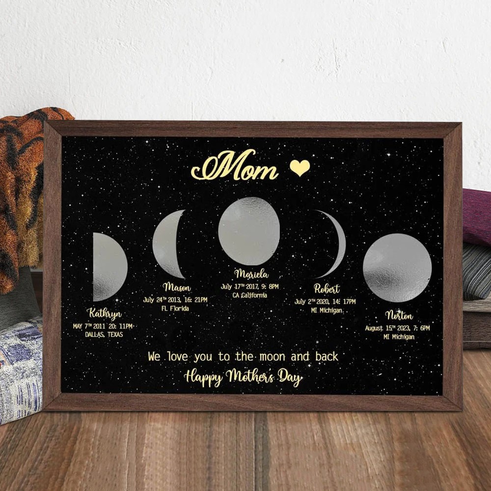 Personalized Moon Phase Wood Frame Mother's Day Gift