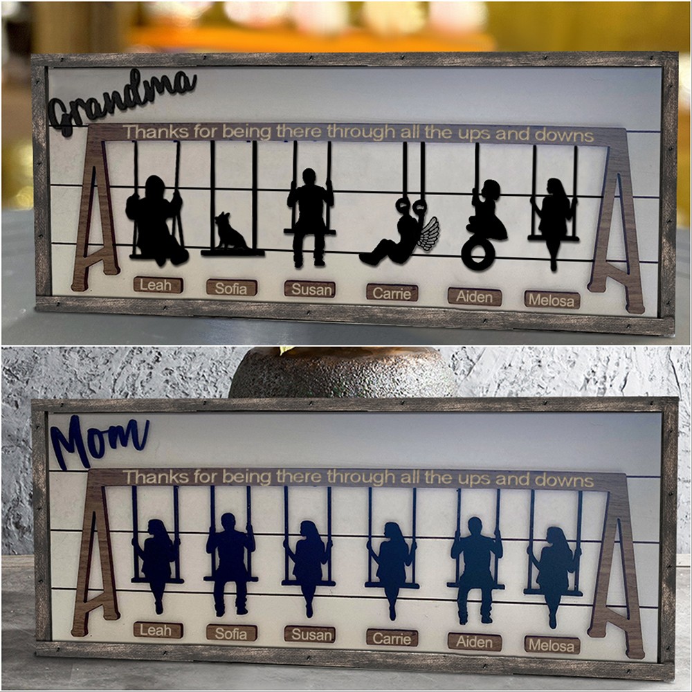 Engraved with the heartfelt message, 'Thanks for being there through all the ups and downs.', this piece is a touching tribute to the unwavering support of moms, dads, grandmothers, and grandfathers.
