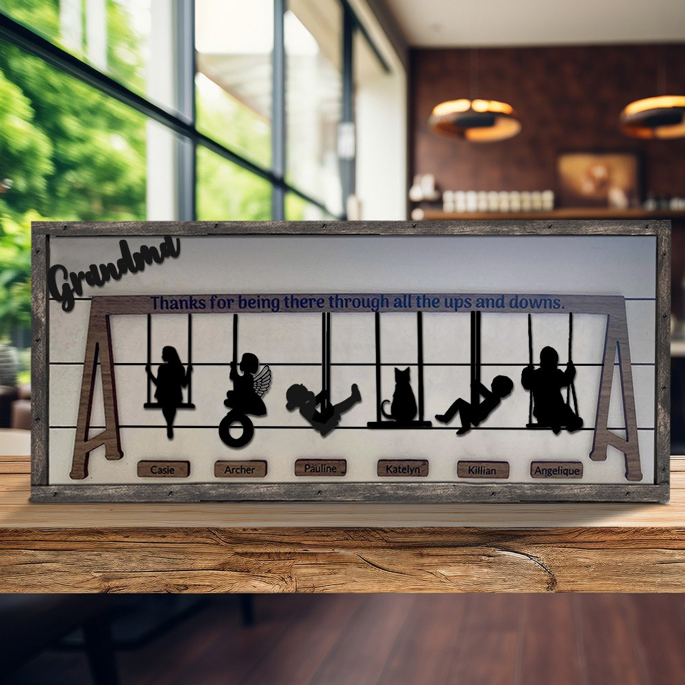 Engraved with the heartfelt message, 'Thanks for being there through all the ups and downs.', this piece is a touching tribute to the unwavering support of moms, dads, grandmothers, and grandfathers.